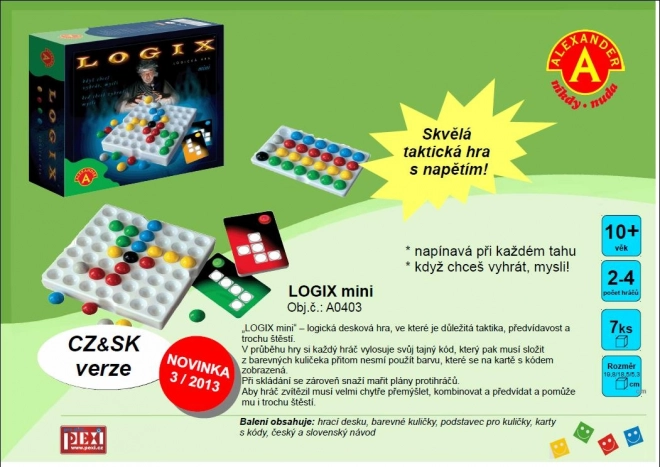 In ALEXANDER LOGIX Mini, each player tries to build their secret code as quickly as possible according to a drawn card. By adding, removing, and swapping colored balls on the 3D board, you create patterns that bring you closer to victory while skillfully blocking your opponents. Fast rounds, clear rules, and tension up to the last move make LOGIX Mini an excellent choice for game nights.