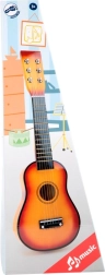 The robust wooden construction and 6 metal strings provide a natural tone and longer lifespan. The practical locking of the tuning pegs helps maintain stable tuning. The package includes a spare string and a pick, so the little player has everything needed to start playing right away.