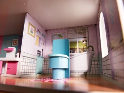 The entire dollhouse has 3 independent levels with a total of 5 rooms – everything perfectly imitates a real apartment house. Each room has been finished in a different style, with decor and furniture matched to the character and purpose of the space. Every piece of furniture is handmade, with great attention to detail and top-quality craftsmanship.