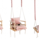 Thanks to its universal pink look, the swing is perfect for a child's room and supports a Scandinavian style interior. Ideal for calm swinging and fun for children who can already sit independently.