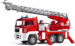 Fire Truck MAN in 1:16 scale is a detailed and realistically looking model equipped with a functional water pump, an extendable ladder, and a multifunctional light and sound module. Perfect toy for all little firefighters!