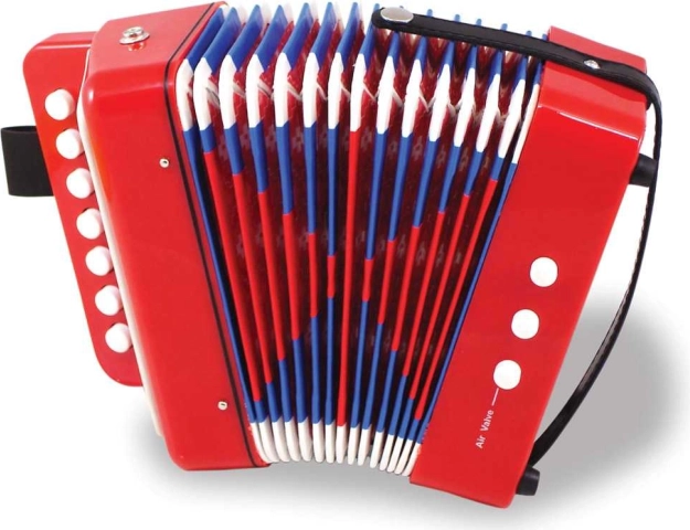 The VILAC kids' blue-white-red accordion is a great introduction to the world of music. The colorful design catches the eye at first glance, and the simple controls motivate children to explore rhythm, melodies, and the basics of playing a musical instrument. Its compact 20×18×10 cm size sits comfortably in smaller hands.