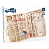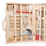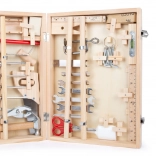 The practical and sturdy Deluxe tool case from small foot is ideal for children who love discovering the world of repairs and making things. All tools have designated positions and are fastened to stay in place during transport. High-quality workmanship using wood, metal, and plastic ensures long-lasting durability and an authentic feeling when working with tools.