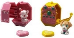 The set includes two jewelry boxes, two figures, two hearts, and two cords. This lets kids wear their favorite characters as pendants or display them in their rooms. Thanks to the practical size, the JewelPet figures are great for play at home or on the go.