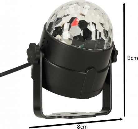 The disco ball uses 3x1W LEDs that create a wide array of colorful effects.