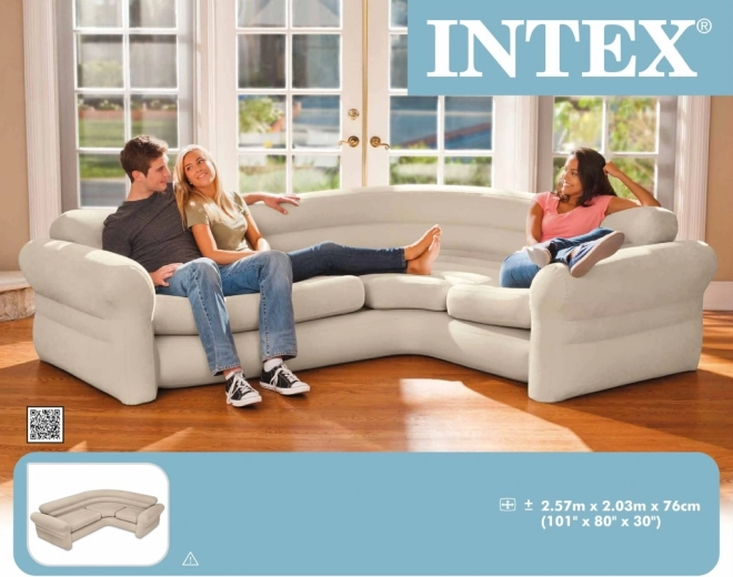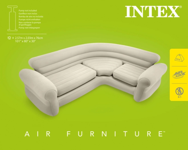 This modern inflatable corner sofa provides the ideal solution for those seeking practical and comfortable seating. It is made from durable vinyl with a smooth surface material, offering a pleasant feel while seated. The sofa is easy to inflate and deflate, facilitating transport and storage. Thanks to its elegant design, it fits perfectly into any interior.