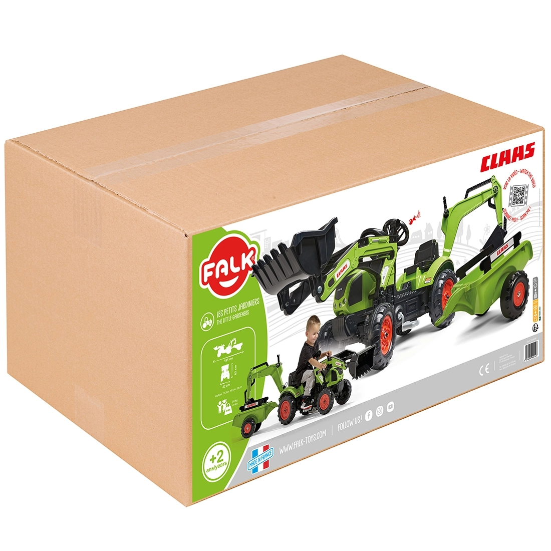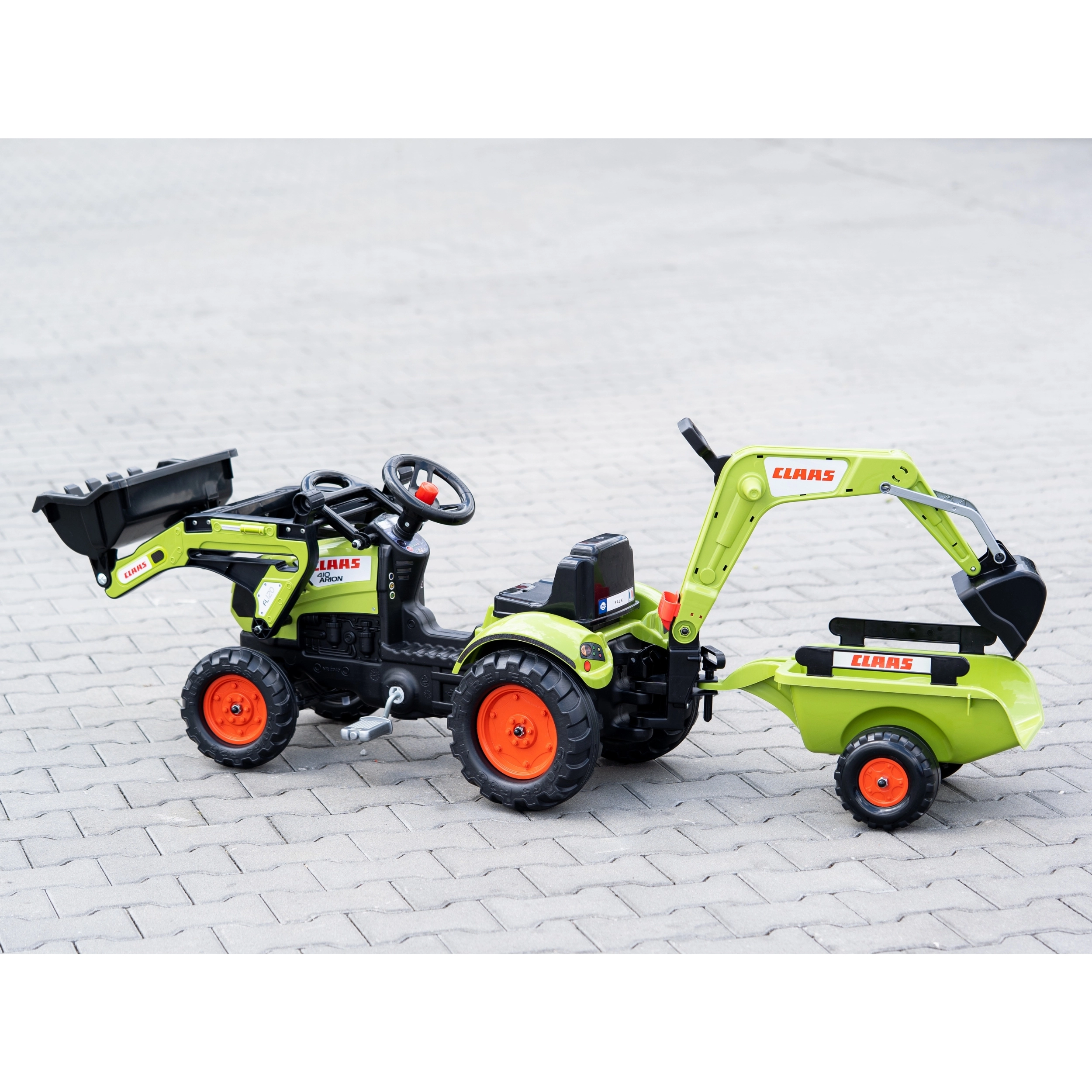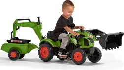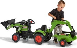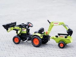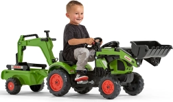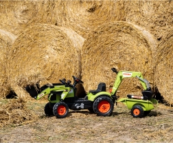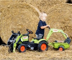 Make a little tractor driver happy with the CLAAS ARION pedal tractor with trailer, bucket, and front loader. Realistic details, a horn in the steering wheel, and official CLAAS colors spark imagination and hours of play. Robust build from high‑quality plastic and a stable chassis ensure safe riding from 2 years old.