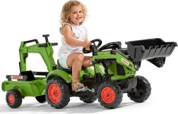 - Playful development of motor skills and coordination through pedaling and operating the loader
