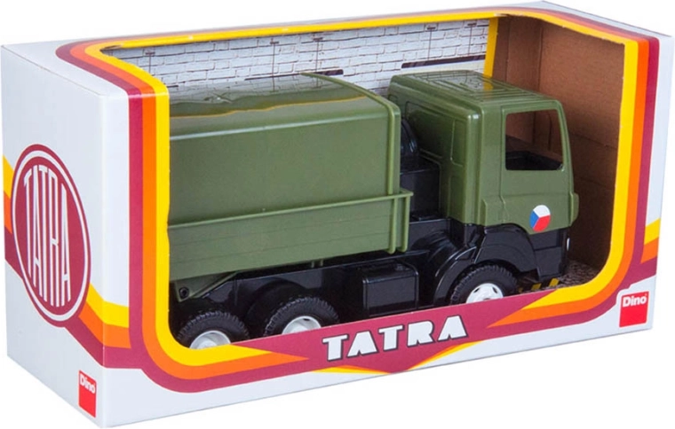 Tatra Phoenix in military design is equipped with an enclosed body that can also be empty. Thanks to the tilting body, children can easily simulate the loading and unloading of materials. This model is made of non-toxic plastics without phthalates, ensuring safe play. Tatra is suitable for children from 1 year old and is proudly made by the Czech company Dino Toys.