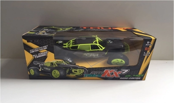 This off-road RC buggy is built for speed, handling, and fun. The 1:14 scale delivers an ideal balance of stability and agility, while 2.4 GHz technology ensures a reliable range without interference. A realistic look, chunky wheels, and visible springs emphasize its racing character.