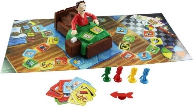 - Complete game set: Dad in bed, game board with spinner, 16 picture cards.