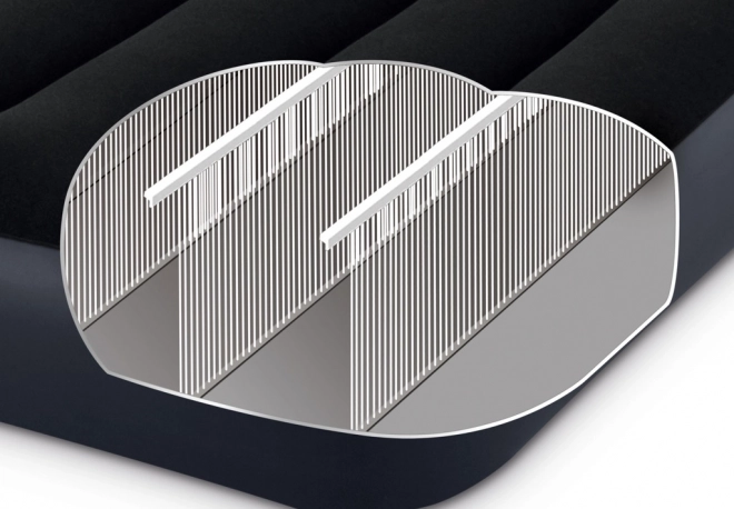 The INTEX airbed measuring 183 × 203 × 25 cm combines stability and comfort for guests at home and on the go. The Fiber-Tech internal construction made of thousands of strong polyester fibers provides even body support, while the flocked (suede-like) surface is soft to the touch and helps keep sheets from sliding.