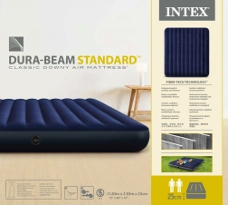 The INTEX inflatable mattress is designed to provide maximum comfort and easy handling. Thanks to the patented Dura-Beam Fiber technology, it is extremely durable and reliable. The Boston valve allows for easy inflation and deflation of the mattress within minutes. Includes a repair patch in case of minor damage.