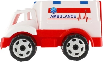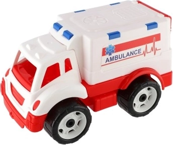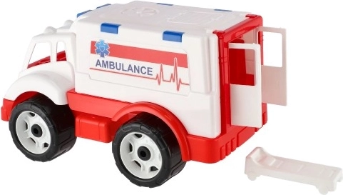 A realistic ambulance toy for little rescuers that boosts imagination, empathy, and fine motor skills. It features opening doors, a removable stretcher, and large wheels for smooth driving on various surfaces. The durable design made of high-quality plastic is ideal for children from 2 years.