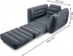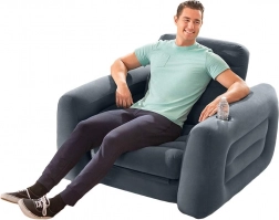 Comfortable and compact inflatable chair offers pleasant seating with an integrated drink holder in the armrest. Ideal for relaxing after a hard day.