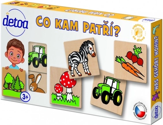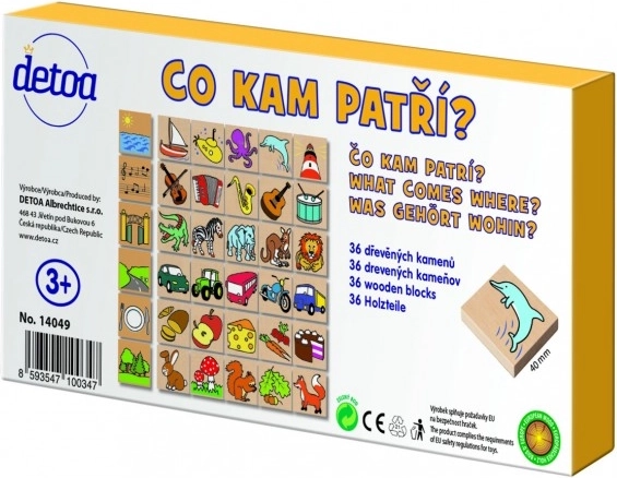 Detoa wooden puzzle Where it goes is an educational game that helps children recognize objects and associate them with the correct picture. This game is ideal for improving logical thinking and memory in children from 3 years old.