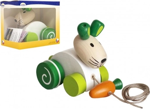 This wooden pull-along bunny motivates children to walk and be active. Thanks to its smooth finish and robust construction, the toy is safe and pleasant to hold. The carrot attached to the string adds a fun element and sparks imagination.