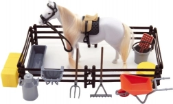 The paddock and accessories expand play possibilities—from feeding to letting the horse rest in a safe space.