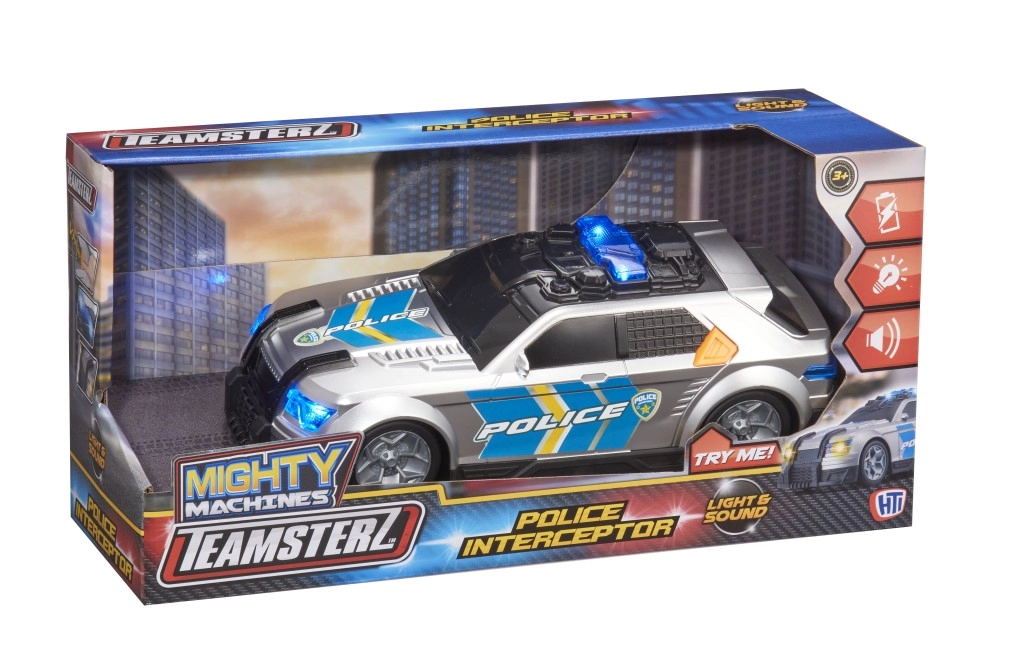 Enjoy action-packed missions with the TEAMSTERZ police car, featuring light and sound effects for an ultra realistic play experience. Kids will love the flashing beacons, sirens, and easy controls that encourage creativity and imagination.