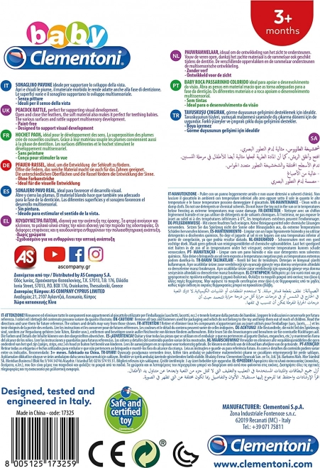 Clementoni Baby Rainbow Peacock Rattle & Teether 2-in-1