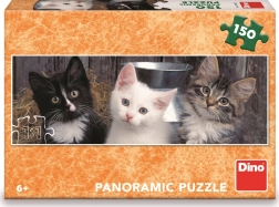 Adorable panoramic puzzle featuring three kittens will delight young schoolchildren and animal lovers. It contains 150 pieces and, once assembled, creates a wide image ideal for display. The puzzle is made in the Czech Republic from health-safe cardboard and develops spatial imagination, sharpness, and concentration while assembling.