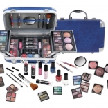 Travel Blue cosmetic case with aluminum corners and integrated mirror – a total of 84 accessories.
