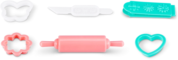The package includes 30 practical accessories, such as baking molds, a rolling pin, and various decorations that support the development of fine motor skills, imagination, and role-play. This set makes a great gift for children who love to create and pretend to be a baker.
