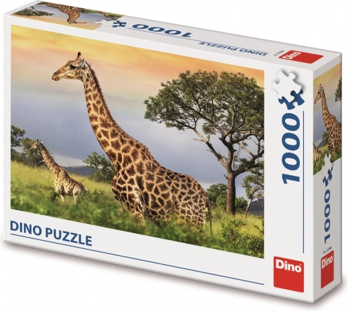 Discover the charm of African nature with a compelling motif of two giraffes under a colorful sky. This 1000-piece puzzle offers enjoyable entertainment, clears your mind, and delivers the joy of a finished picture that you can also fix with special glue and display.