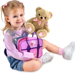 A lightweight handbag with handles and a zipper makes it easy to carry the teddy and small items—practical and stylish at the same time.