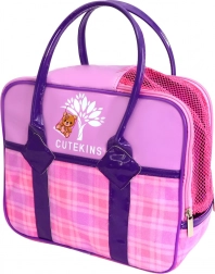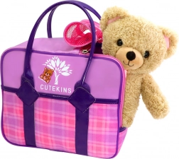 The handbag with a pink‑purple checkered pattern and zipper is ideal for carrying the plushie and tiny treasures. Thanks to sturdy handles, it’s easy for a child to hold. The CUTEKINS style stands out with its colors and playful bear motif, bringing joy with every outing.