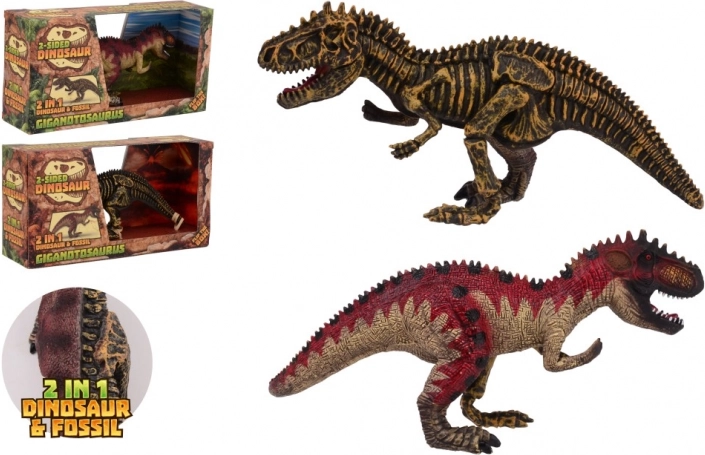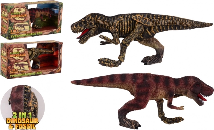 One side a realistic dinosaur, the other a detailed skeleton — ideal for play and education.