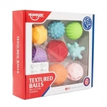 Discover the set of eight textured balls designed to enhance sensory perception and coordination in children. Various colors and textures ensure an interactive and fun playtime.