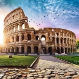 An impressive photo of the Roman Colosseum in the warm hues of sunset gives the finished image a unique atmosphere and decorative value.
