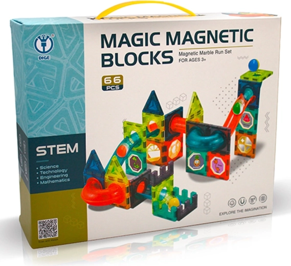 The 66-piece magnetic marble run is a great choice for children who love to create, explore, and improve their skills. Thanks to the smart connection of elements, you can build diverse tracks and obstacles that guarantee hours of active, meaningful play.