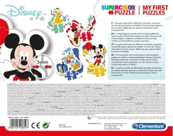 Discover fun with the beloved hero MICKEY MOUSE! The CLEMENTONI My First Puzzle 4-in-1 set brings four different puzzles with increasing difficulty (3, 6, 9, and 12 pieces), helping children playfully strengthen concentration and patience. Extra-large, thick pieces are easy to hold and withstand everyday play.