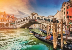 Immerse yourself in the romantic atmosphere of Venice with an image of the famous Rialto Bridge at sunset. The TREFL UFT series allows you to combine multiple puzzle designs into one large collage—easily, precisely, and without limits. A special die-cut ensures that pieces from compatible UFT sets interlock, and the completed image can be safely moved without falling apart.