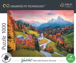 Discover the magic of autumn in Bavaria with high-quality TREFL puzzles from the UFT collection. Thanks to Unlimited Fit Technology, you can easily connect motifs from the series and create your own collages. The 1000-piece puzzle made of sturdy blue cardboard holds together perfectly, each piece has a unique shape, and the bio packaging is eco-friendly.