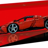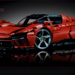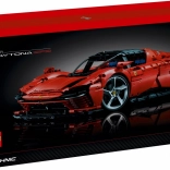LEGO Technic Ferrari Daytona SP3 is a precise replica of a real Ferrari, featuring many functions such as steering, an eight-speed sequential gearbox with a shift lever, and a V12 engine with moving pistons. This collectible model has opening butterfly doors and a hood that reveals a unique serial number providing access to online materials.