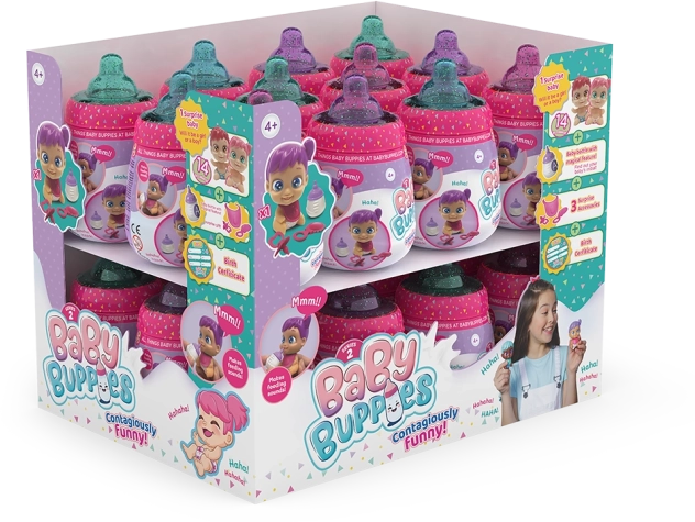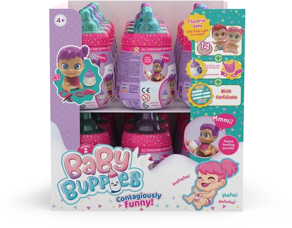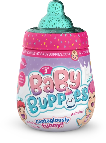 Baby Buppies are fun collectible dolls in stylish bottle-shaped packaging. Each baby can babble and laugh realistically, bringing emotions and lots of fun to playtime. Thanks to the bright colors and cute design, kids will fall in love with them quickly.