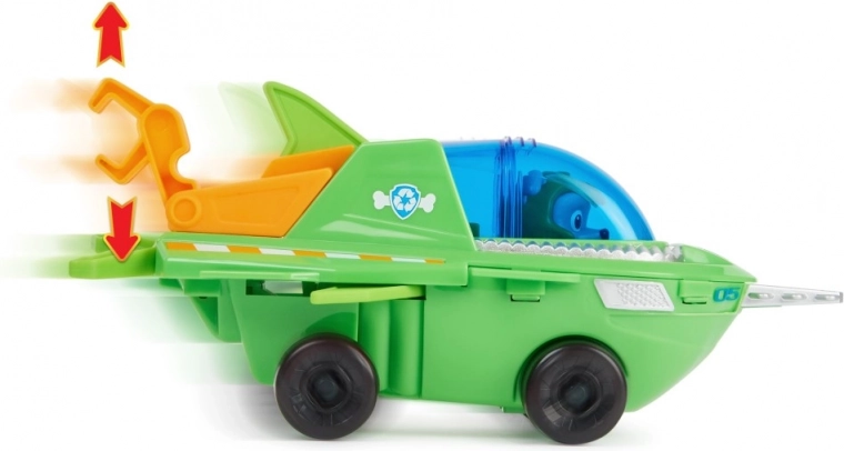 Rocky in a sawfish-inspired rescue vehicle for water pups.