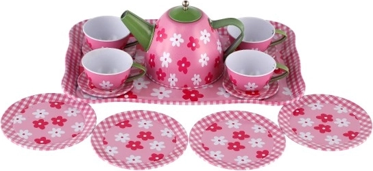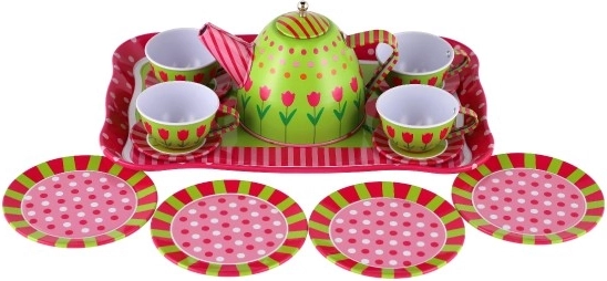 Teapot, cups, saucers, plates, and a tray—everything kids need for a perfect tea party with friends.