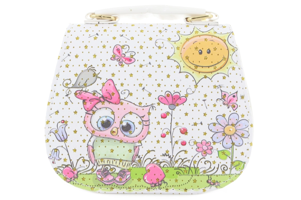 A cute children's handbag with an owl in white will delight every little fashionista. It offers compact dimensions for small essentials and is ideal for everyday wear. Lightweight, practical, and stylish choice for children aged 3 and up.