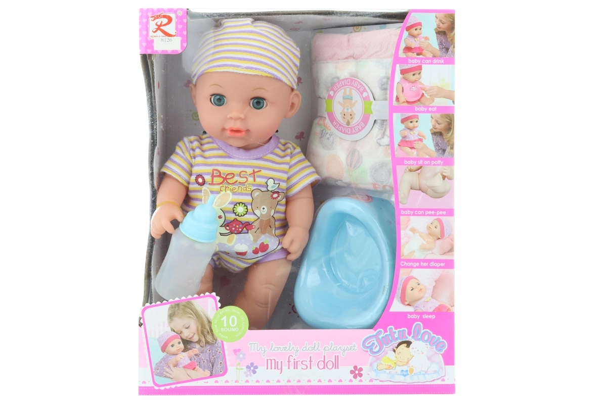 The package includes everything needed for hours of fun: a diaper, potty, and bottle. The doll is lightweight and easy to hold even for smaller children. Its compact size makes it suitable for travel and easy storage.