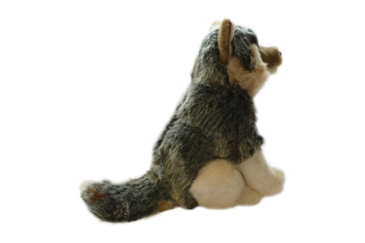 Plush sitting wolf approximately 20 x 24 x 11 cm (without tail). Tail length approx. 9 cm. Age 0+