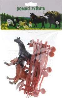 Plastic animals - horses with a fence. The set includes 4 horses and 4 fence pieces. Package dimensions approx. 15 x 25 x 5 cm. Animal size approx. 10 cm (depending on type). Age 3+