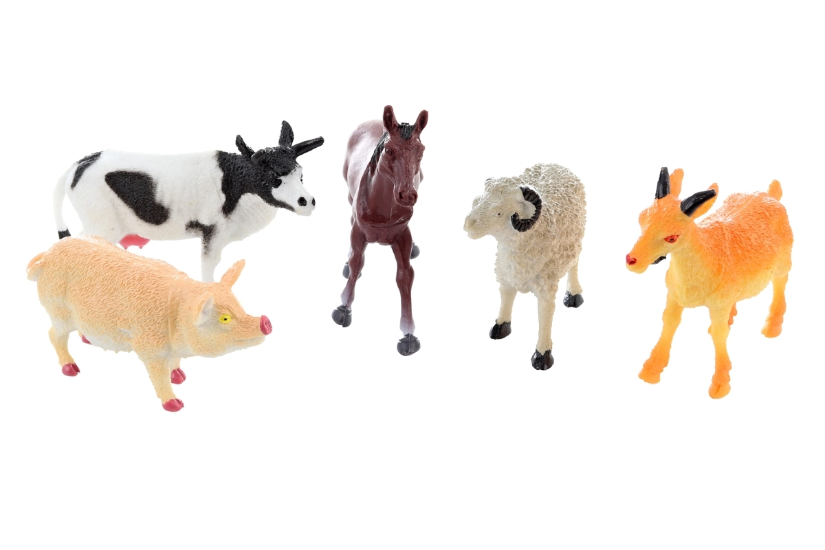- 5 plastic figures (pig, ram, horse, goat, cow)