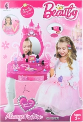 This elegant plastic vanity table fits perfectly in any child's room. Made with attention to detail, the table is equipped with a colorful mirror and a complete set of accessories. Accessories include: