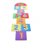 Foam puzzle in the shape of a hopscotch. Contains 10 pieces. Package dimensions approx. 56 x 30 x 6.5 cm. Age 3+