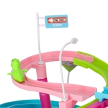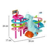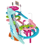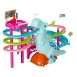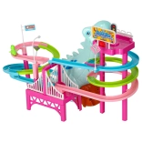 This colorful dinosaur-themed race track delights both younger and older kids. As soon as the dino-shaped cars start moving, the big dinosaur makes realistic roaring sounds and the track lights up with LED lights. A single switch conveniently controls movement and effects, so kids can fully focus on play.