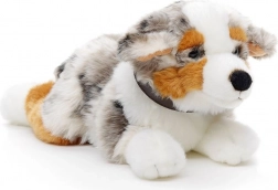 A cute plush dog of the Australian Shepherd breed in a lying position will delight children and animal lovers alike. It is soft, velvety, and thanks to its eco-friendly design, gentle on nature. Ideal for cuddling, play, or as a decoration for a child’s room.